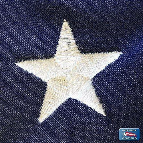 - Expert Craftsmanship! SEWN stripes use double-needle LOCKSTITCH with 4 ROWS on the Fly Hem and Back Tack reinforcement. Vivid WHITE STARS are densely EMBROIDERED for beautiful presentation. Two STRONG Brass Grommets.