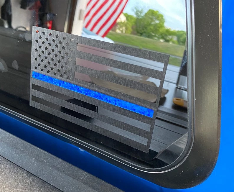 This can also be ordered with a red line in support of firefighters or a green line in support of the military.