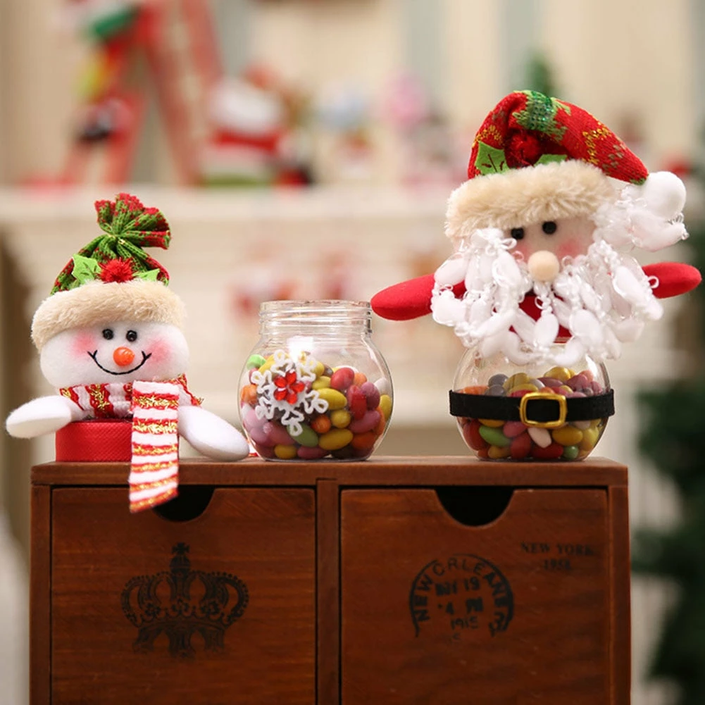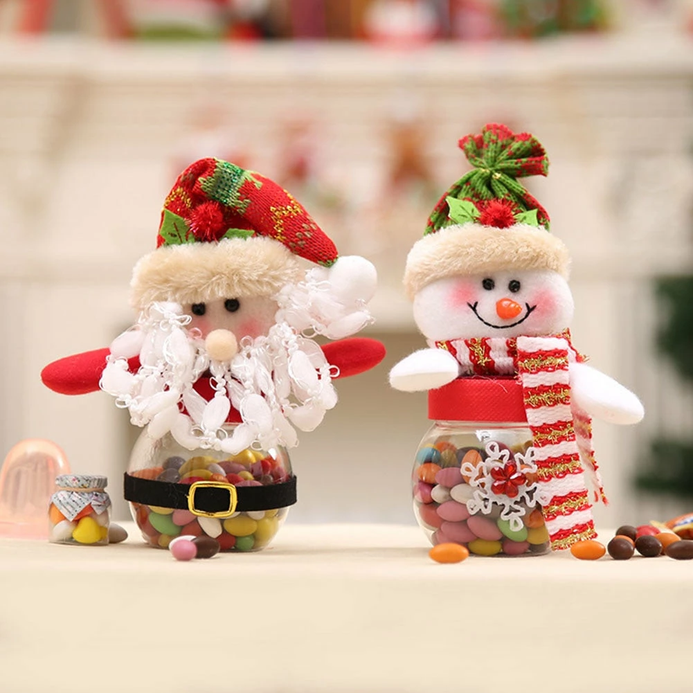 The American Store Christmas Decorations Cute Santa Claus Snowman Candy Jars Container Christmas Ornaments Kids Gifts Holiday Party Table Decor Christmas Gift Bag Collection