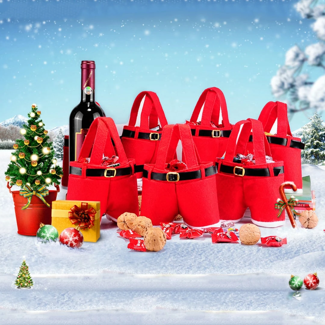 The American Store Christmas Gift Bag Collection Useful 1Pc Merry Christmas Gift Treat Candy Wine Bottle Holder Santa Claus Suspender Pants Trousers Decor Christmas Gift Bags
