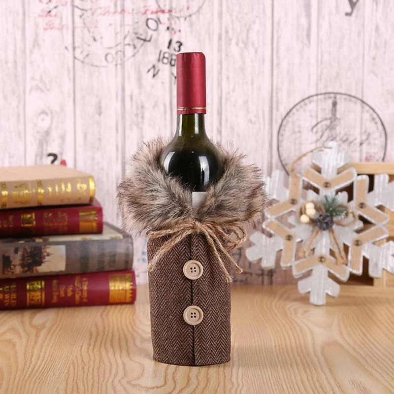 The American Store Christmas Home Decor Christmas Wine Bottle Set Bow Button Clothes Style Bottle Cover Kitchen Supplies For New Year Christmas Dinner Party Decoration