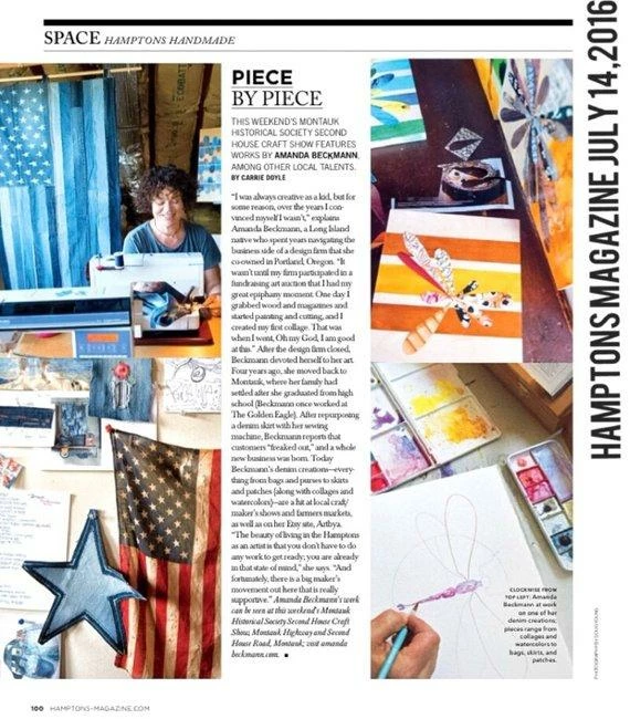 Denim American Flag handcrafted from denim jeans in Montauk New York by ‘artbya’ Amanda Beckmann.