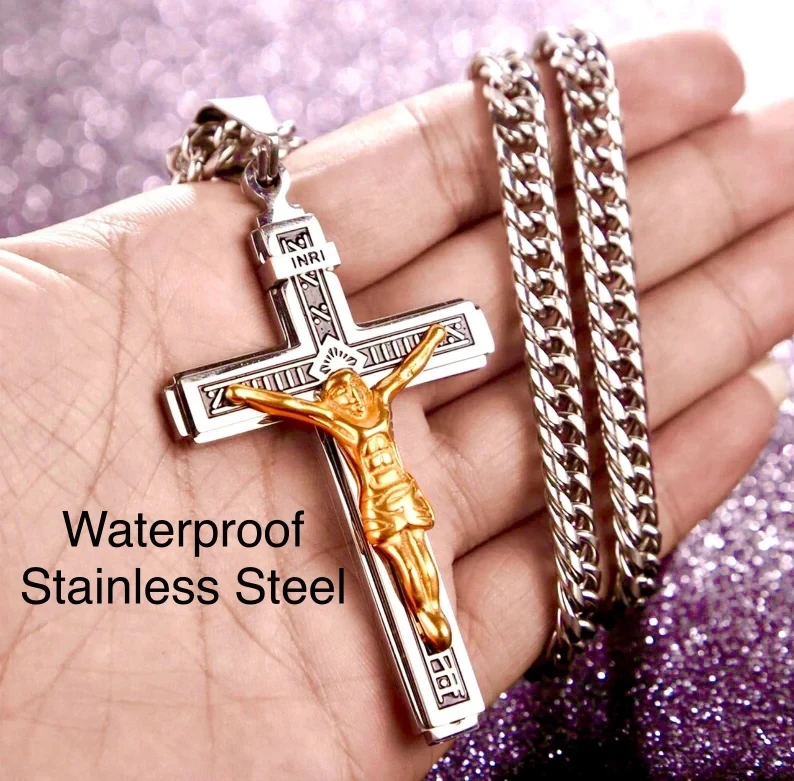 Be the first to review “The American Store Cross Necklace For Men Silver Gold Heavy Stainless Steel Waterproof Thick Curb Chain Jewelry Jewellery Cross Of Jesus” Cancel reply