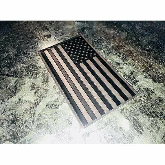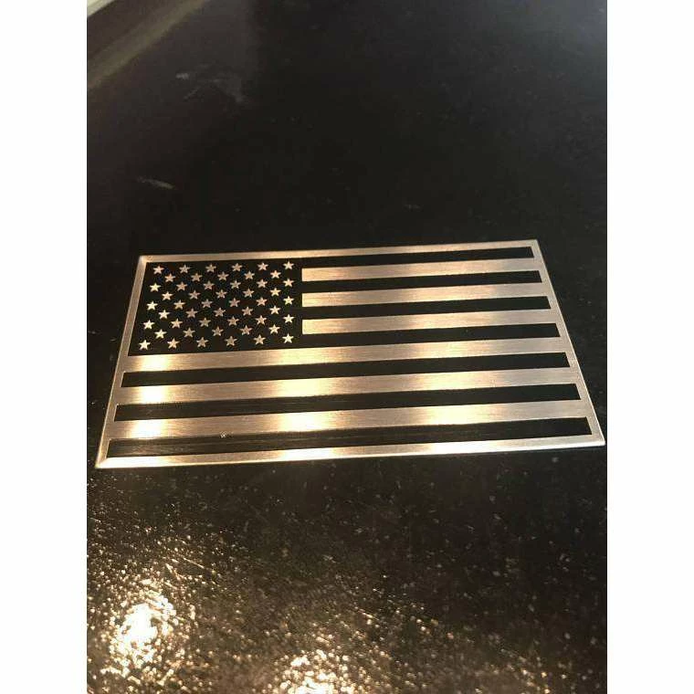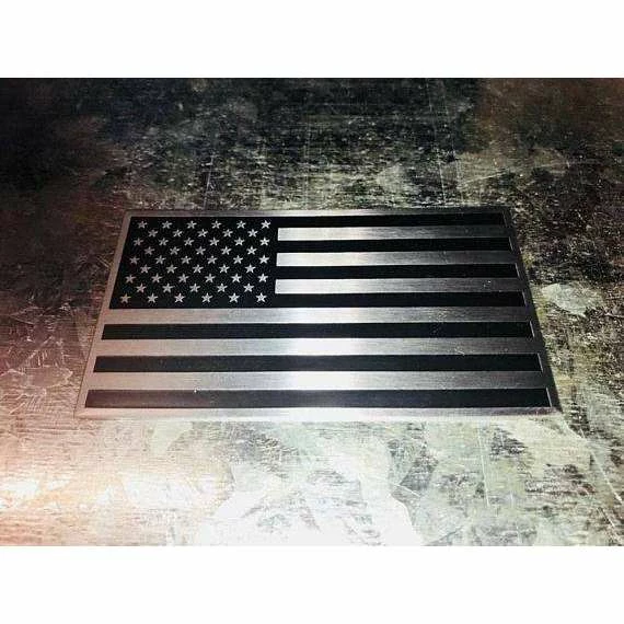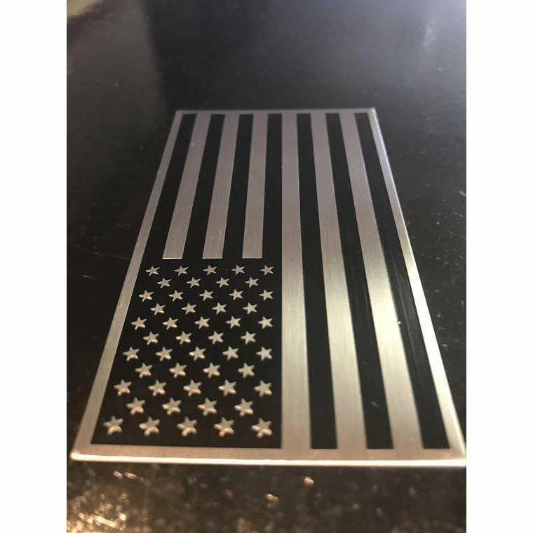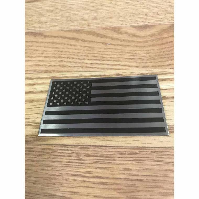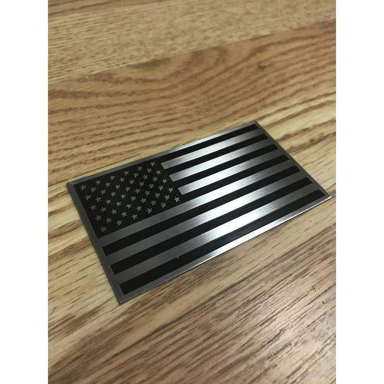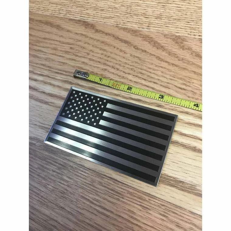 3D American Flag Aluminum Badge Emblem for your Car, Truck or Motorcycle, Black on Silver 2×3.5″ nice thick badge to display on your choosing. Military style and Made in the USA.