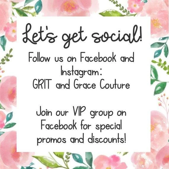 Thank you for supporting GRIT and Grace Couture through your order. Follow us on Instagram or join our VIP group on Facebook for new arrivals and promo codes! Tag us on social media so we can see how you styled your new gear!