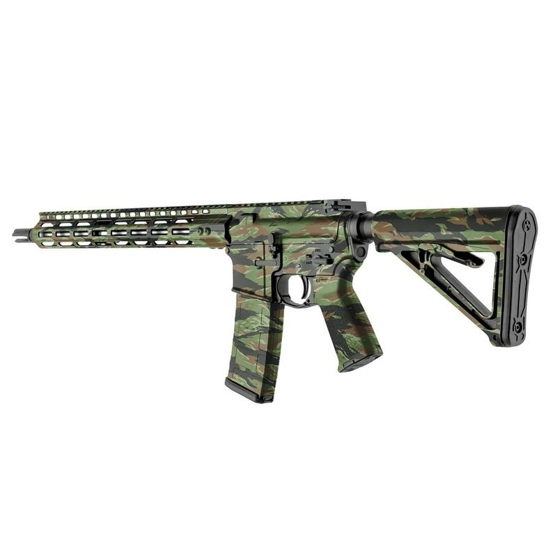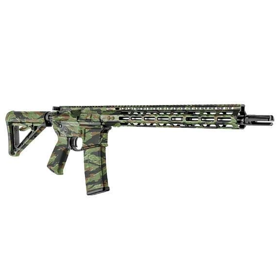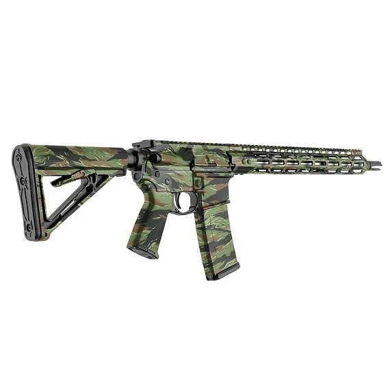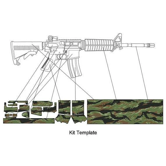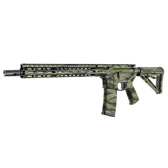 GunSkins AR-15 Rifle Skins are designed to fit any AR-15 or M4 Carbine, even airsoft replicas. The kit includes pieces for the upper and lower receiver, pistol grip, magazine, Picatinny rails (up to 16″), plus enough material for the forend, buttstock, and other accessories.