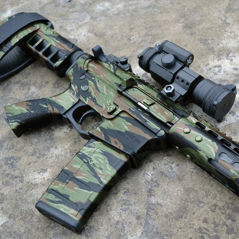 You can cover and protect your AR/M4 Platform with a Gun Skins AR-15 Rifle Skin! Our precut template makes installation quick and easy. Simply clean the surface, peel, and press, add heat to conform, and trim away any excess material. The American Store offers top of line camouflage and specialty patterns to choose from, fit for any application.
