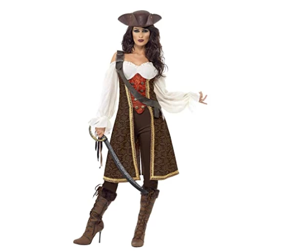 Buy captain pirates of Caribbean Jack Sparrow Women Halloween Party costume includes High Seas Pirate Wench Costume, Brown, with Dress, Trousers and Baldric. Order now!