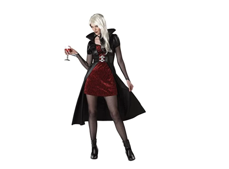 Get a very scary vemire look on Halloween party with Women’s Blood Thirsty Beauty Costume including dress with attached collar and belt made up of Polyester.