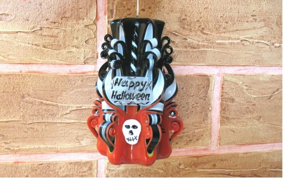 Halloween candle, Carved candle, orange black, gift for Halloween, party Halloween, Candles carved, dacor skull.