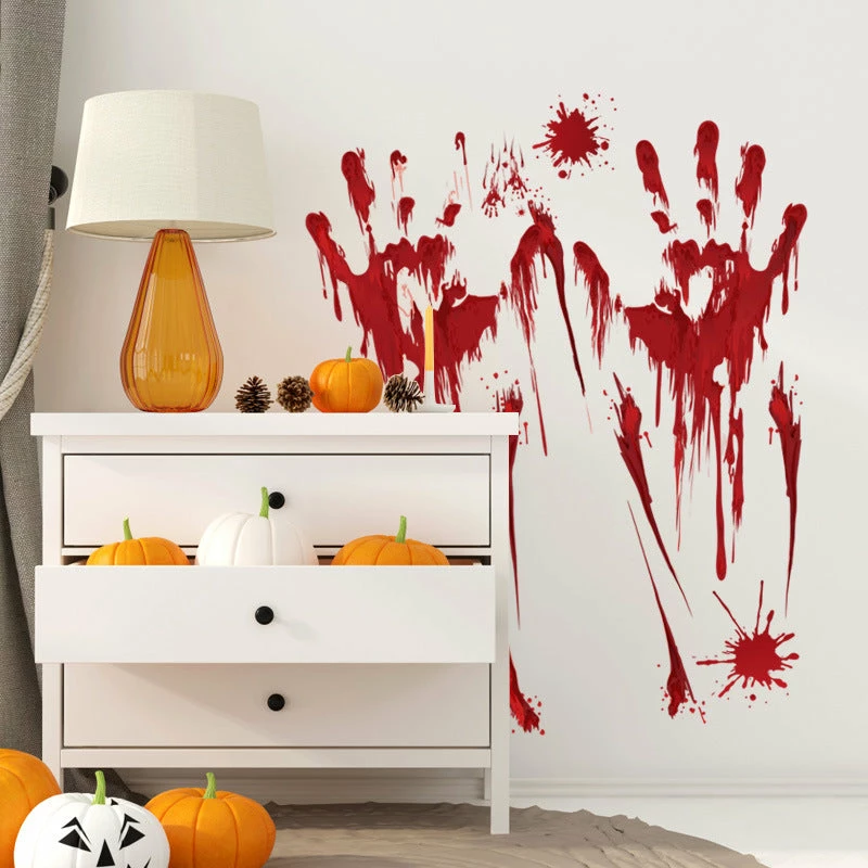 The American Store Halloween Decorations Horror Halloween Decoration Wall Stickers Bloody Fingerprint Blooding Handprint Foot 3D Wallpaper Waterproof Floor Door Decor