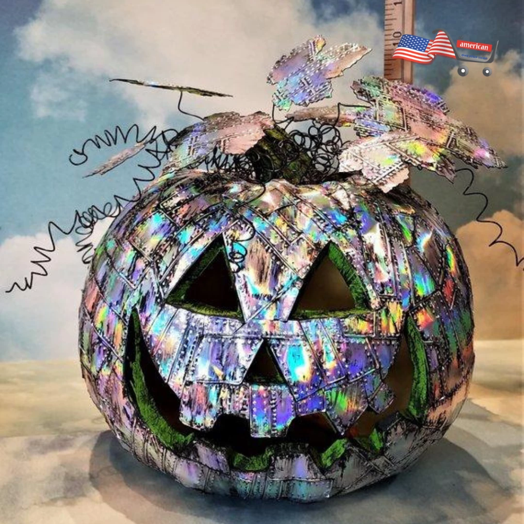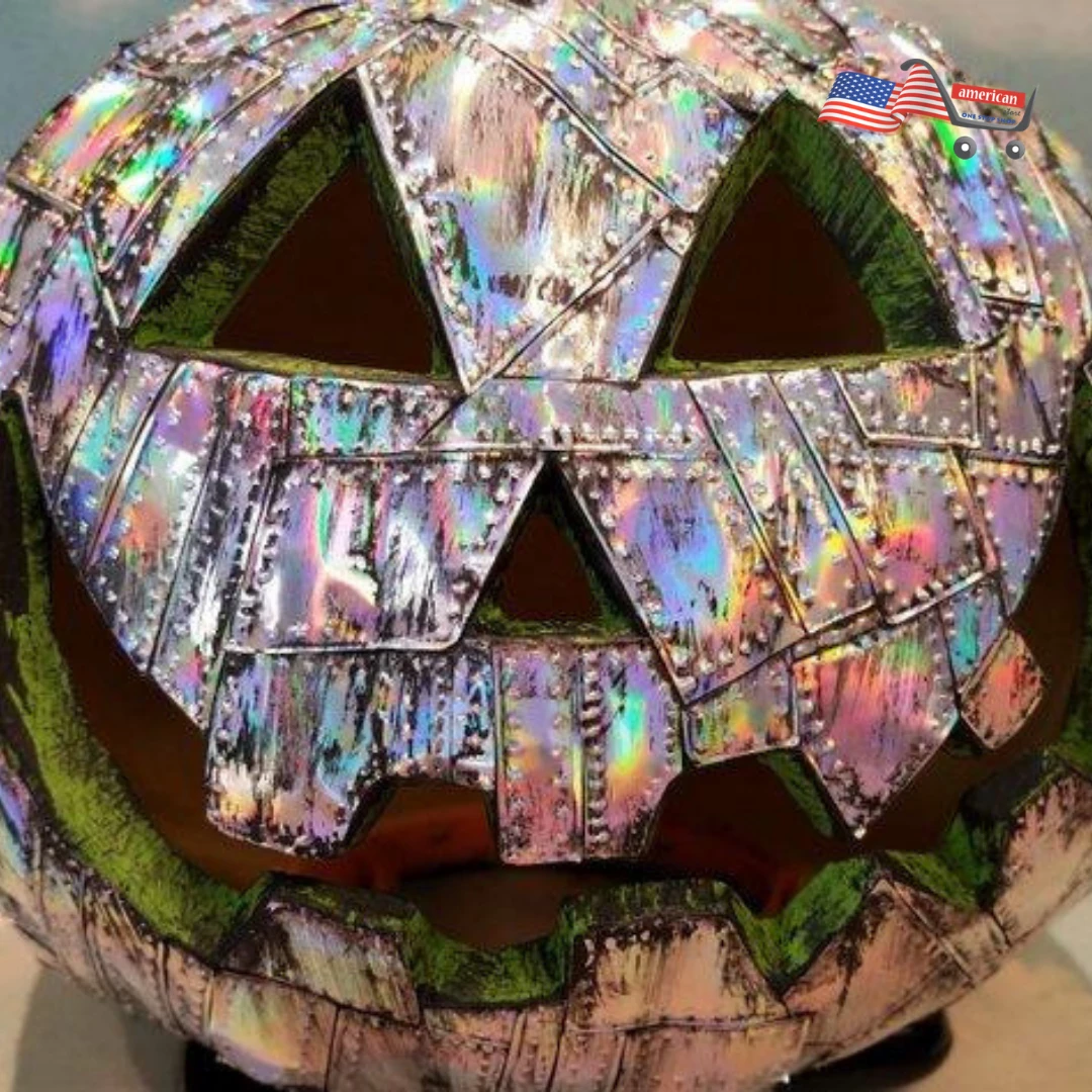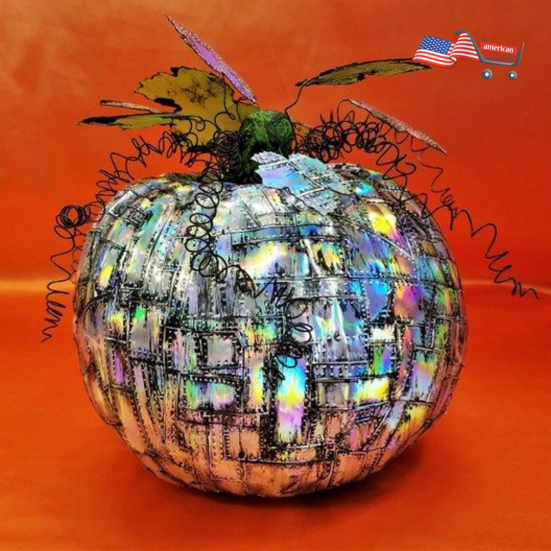 Holographic Grunge Industrial Art with a Steampunk Twist, this Riveted Metal Pumpkin puts the Punk in Halloween Theme with this jacked up Jack – O – Lantern.