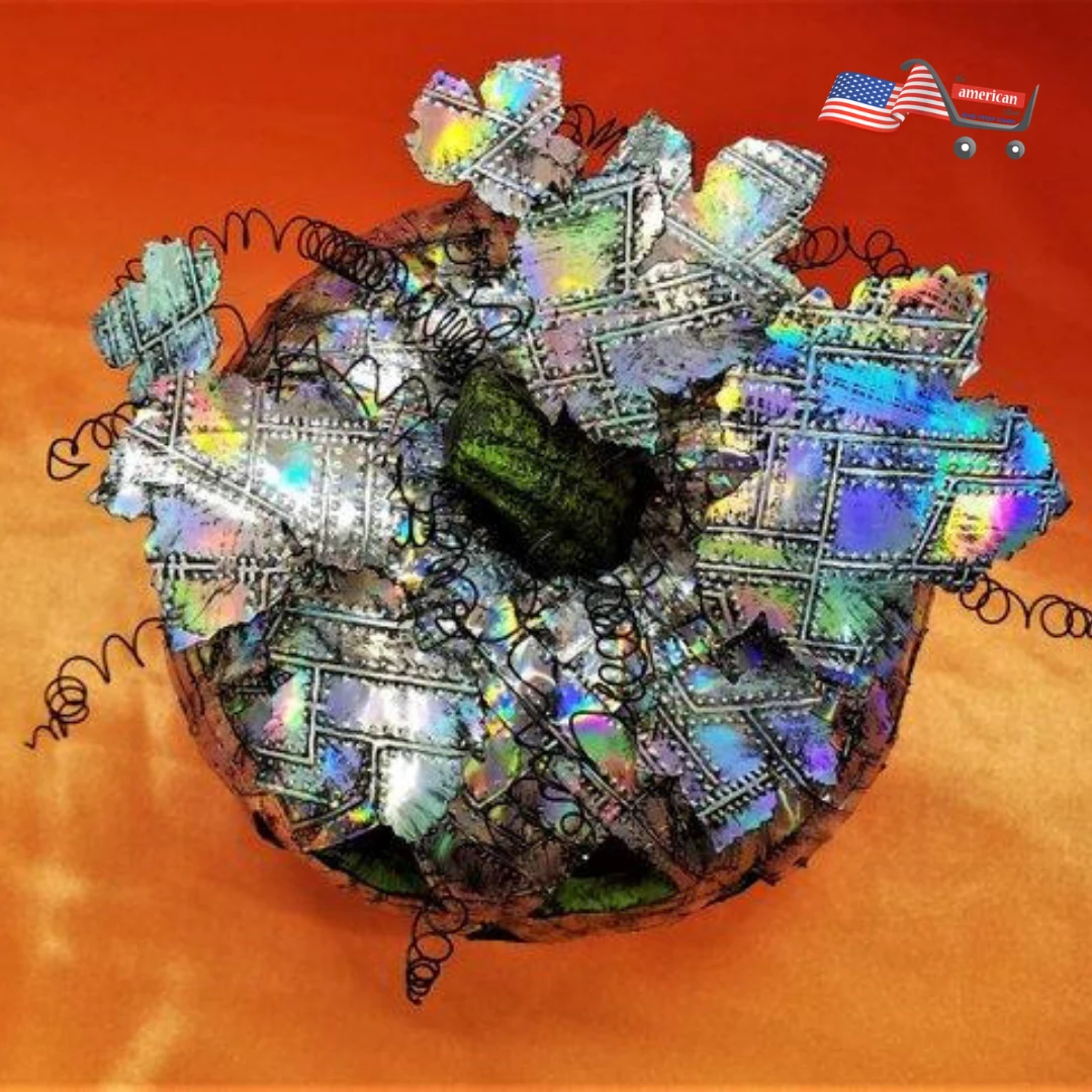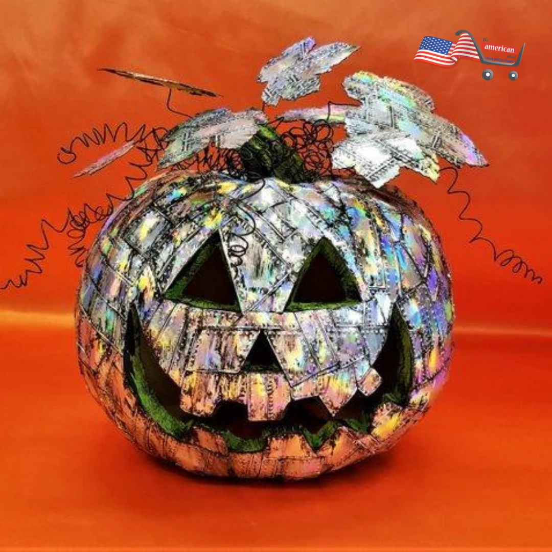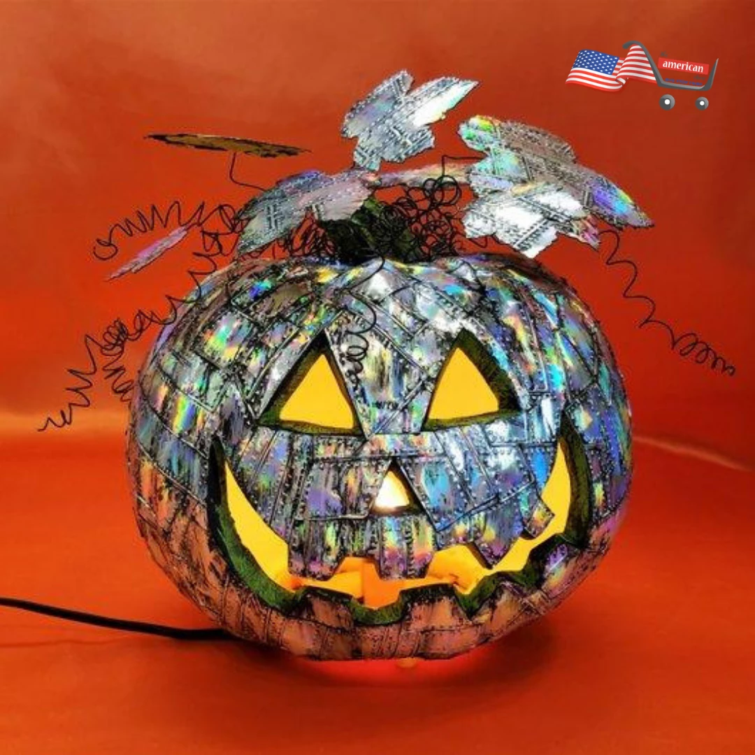 Holographic Grunge Industrial Art with a Steampunk Twist, this Riveted Metal Pumpkin puts the Punk in Halloween Theme with this jacked up Jack – O – Lantern.