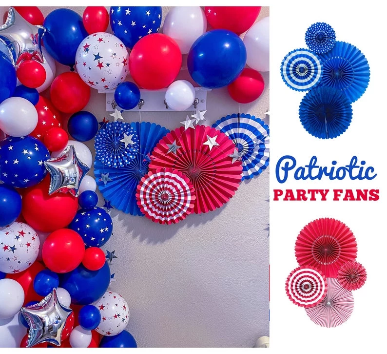 Choose either the red or blue fan set, or pair both sets for a perfect July 4th party display!