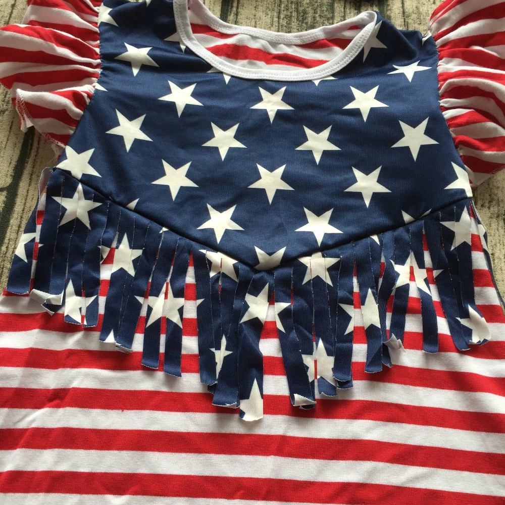 The American Store Kids Clothing 2018 Hot Sleeveless Kids July 4th Dresses Baby Girl Summer American Flag Tassels Dress Children Boutique Outfits With Accessory