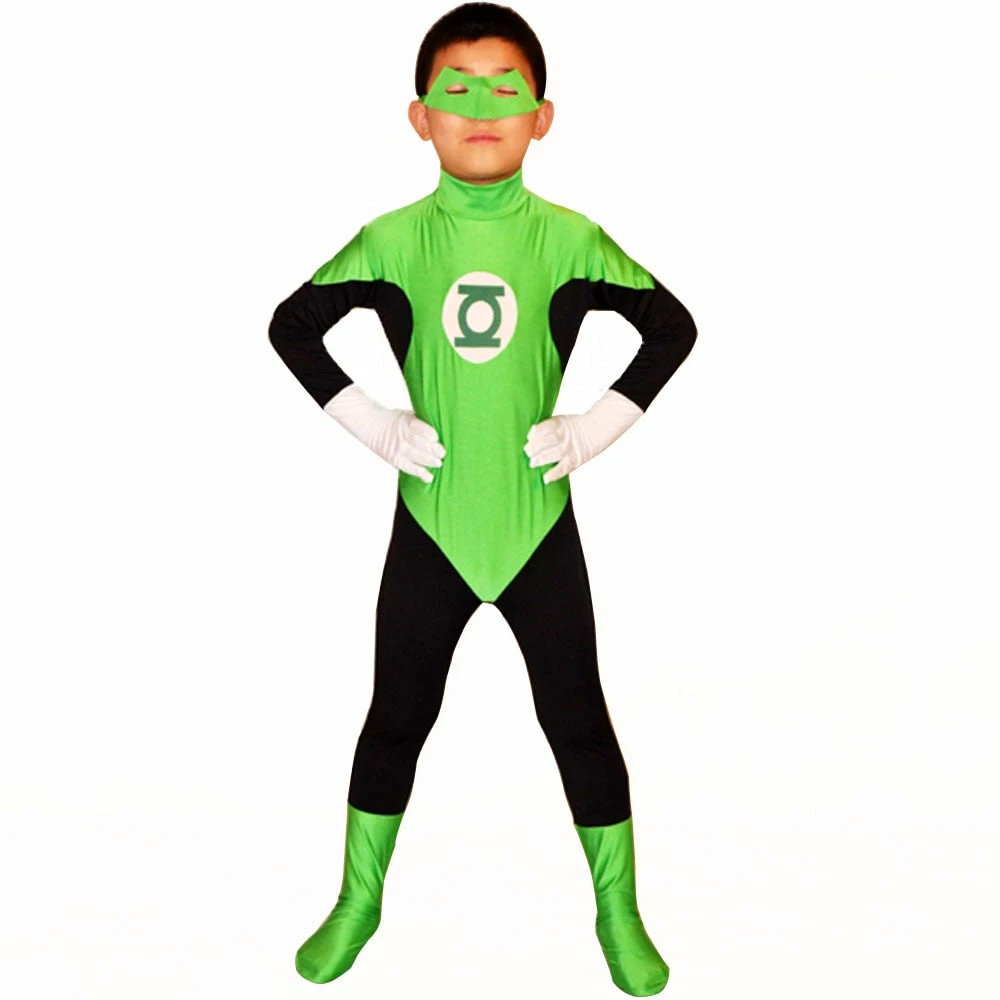 The American Store Kids Green Lantern Costume Masked Superhero Costumes Green Zentai Catsuit Lantern Cosplay Party Costume Fancy Dress Custom Size