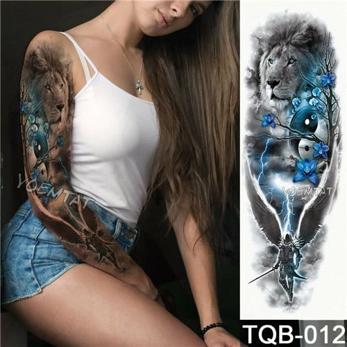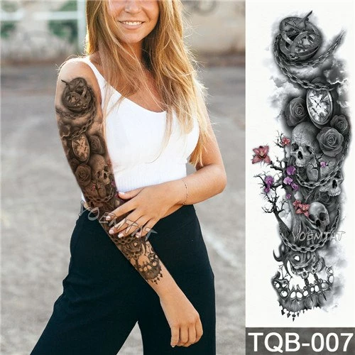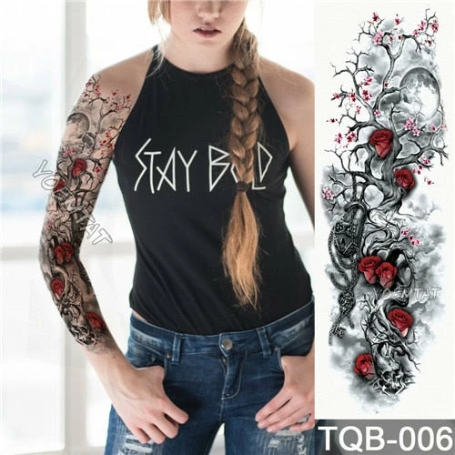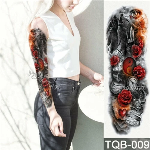 The American Store Large Arm Sleeve Tattoo Waterproof Temporary Tattoo Sticker Skull Angel Rose Lotus Men Full Flower Tatoo Body Art Tattoo Girl Halloween Temporary Tekashi69 Tattoos