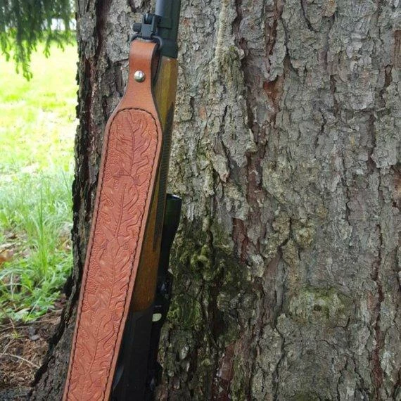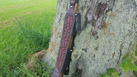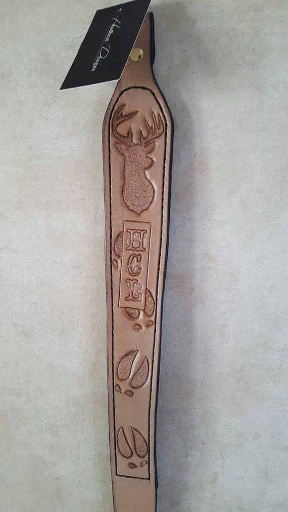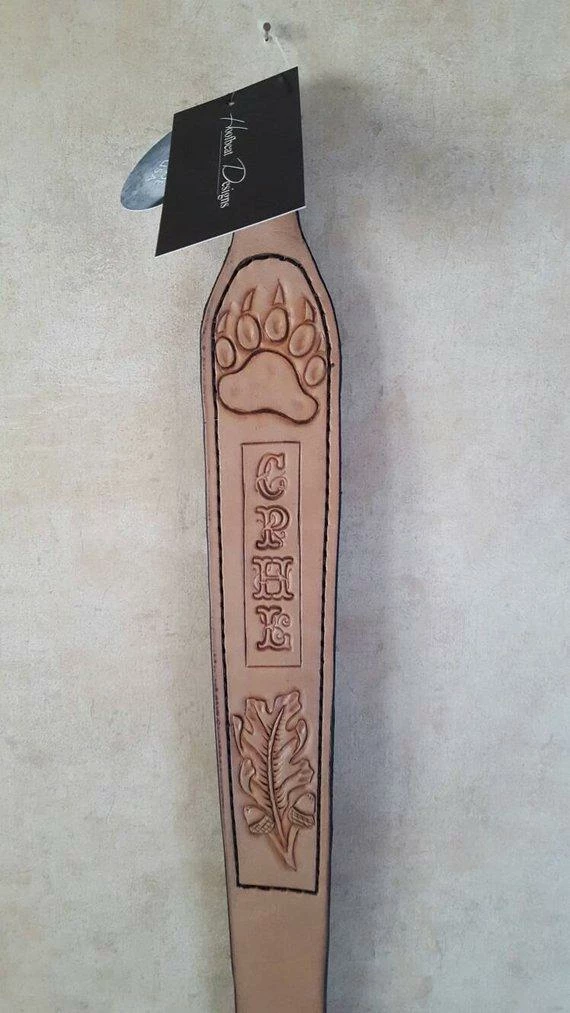 Every part of this beautiful personalized custom Leather Rifle Sling is handmade, from the hand tooled design, stitching and incredibly hand smoothed edges, to the dye and finish; no machines touched this piece. Products are not made like this anymore unlike machine made pieces you can rest assured knowing this high quality piece is made with the utmost attention to detail.