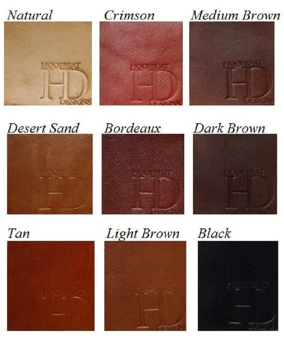– Leather Color: Natural, Desert Sand, Tan, Crimson, Bordeaux, Light Brown, Medium Brown, Dark Brown, or Black