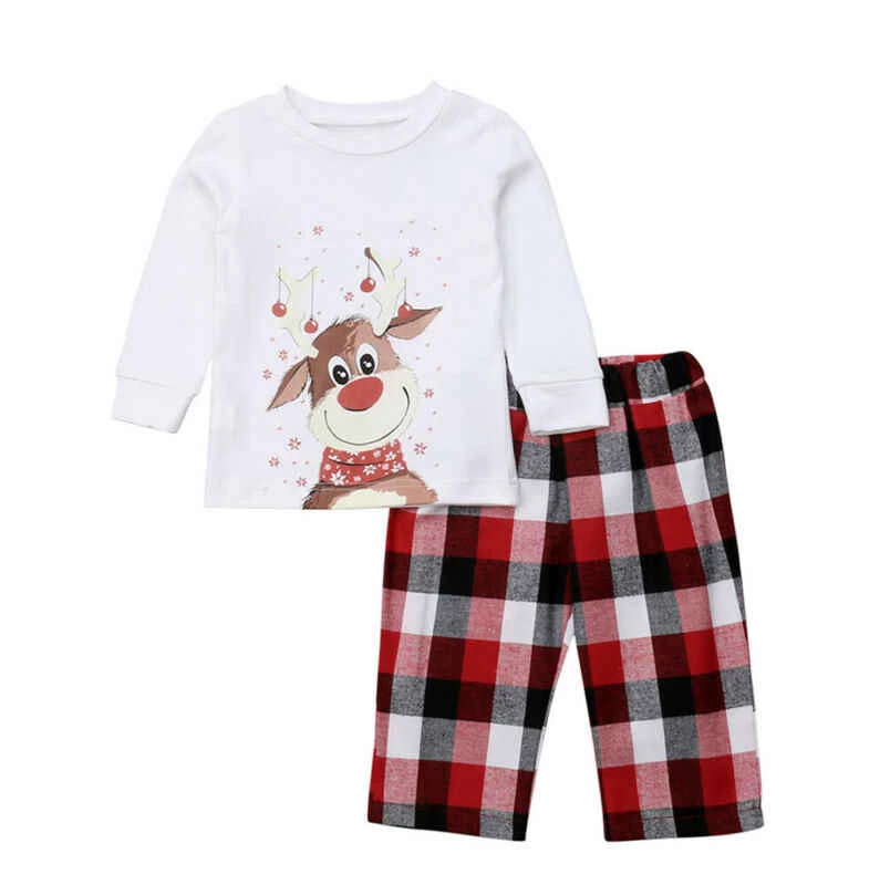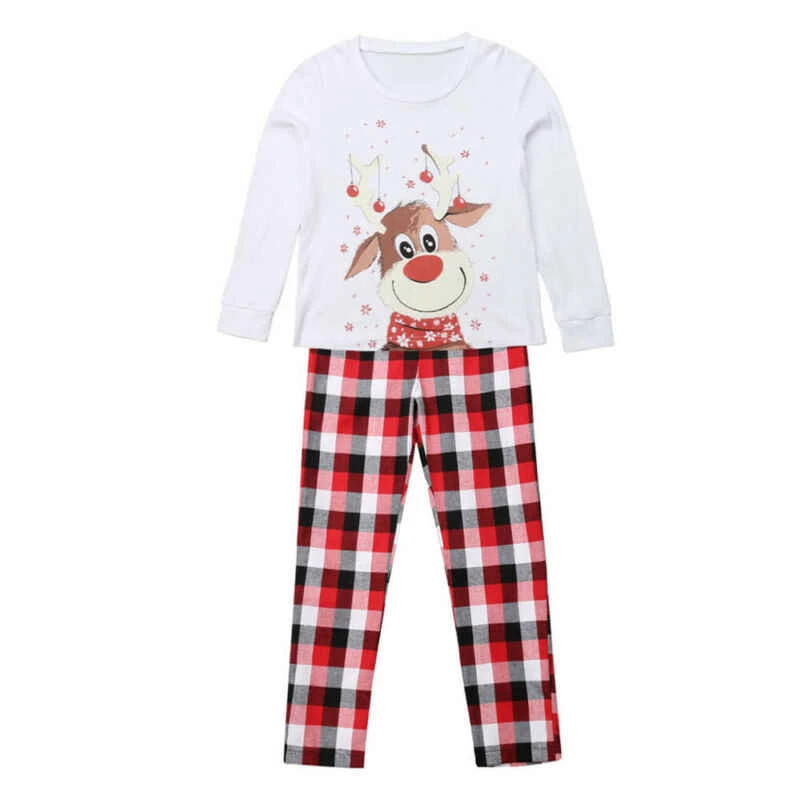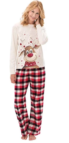 There is a white colour top and a plaided pattern pajamas of red white and black colour. There is a long list of sizes are available at Online American Store.This Christmas family matching pajamas set is for parents, kids, and babies suitable for nightwear.This product is available in different sizes so Buy the pajamas of your choice, size and Enjoy the Christmas!!!