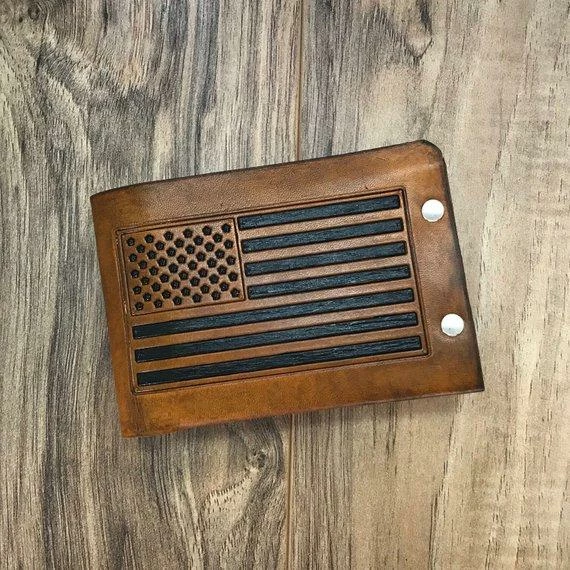 – Pick between a variety of patriotic and Christian images and truths to be embossed onto your custom leather wallet.