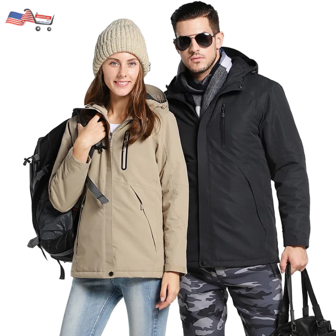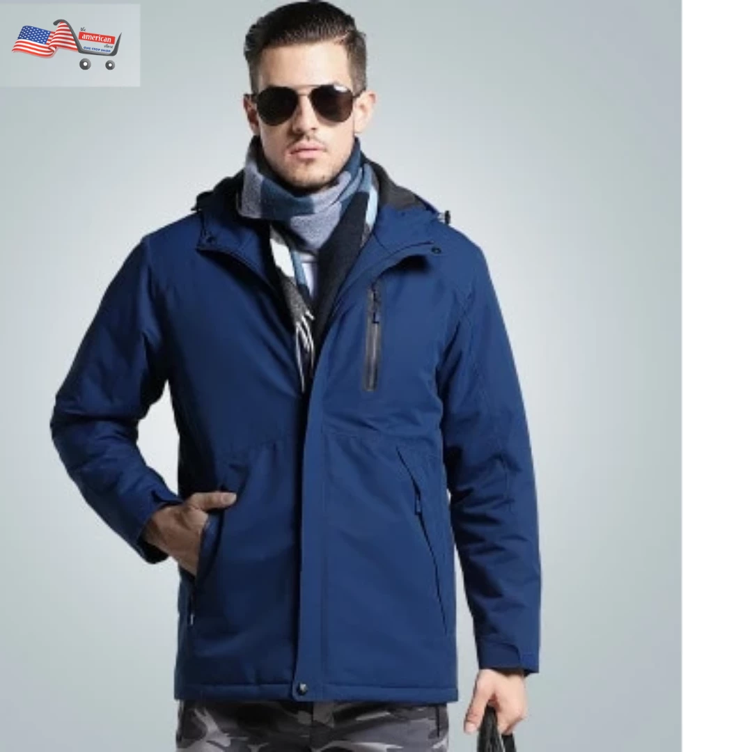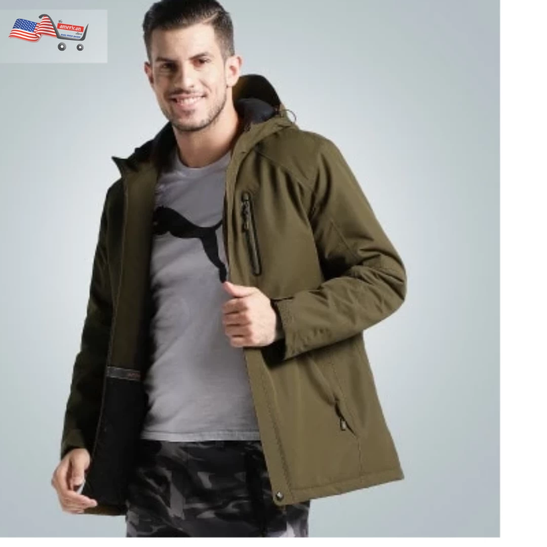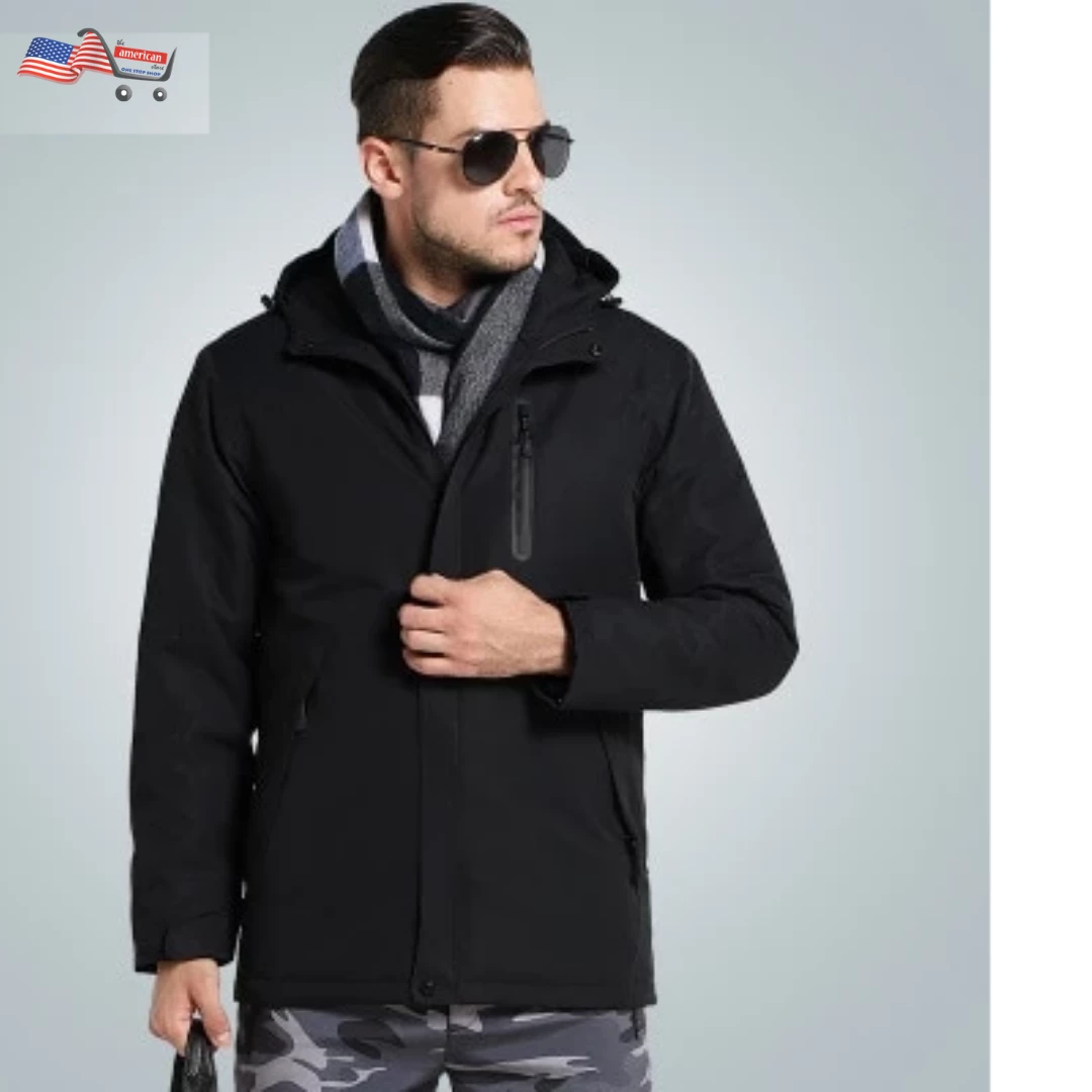 The American Store Men Winter Thick USB Heating Cotton Jacket Waterproof Windbreaker Hooded Winter Coat Men Thick Warm Mens Winter Jacket Parka