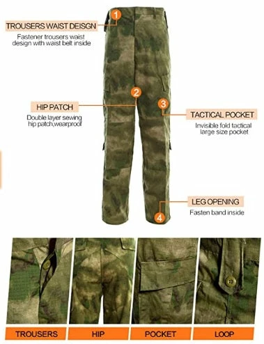 ▶【Functional Pocket Design】: Army uniform for men have a lot of pockets for spare magazines, blades, pens, bind keys, and the rundown goes on. Strategic Jacket: 2 velcro chest pockets, 2 velcro arm pockets, 2 velcro little pen pockets, snare and circle conclusion. Strategic Pants: 2 velcro incline pockets, 2 velcro load pockets with versatile drawstring for keeping stuffs gets, 2 velcro little leg pockets, 2 catches back pockets.