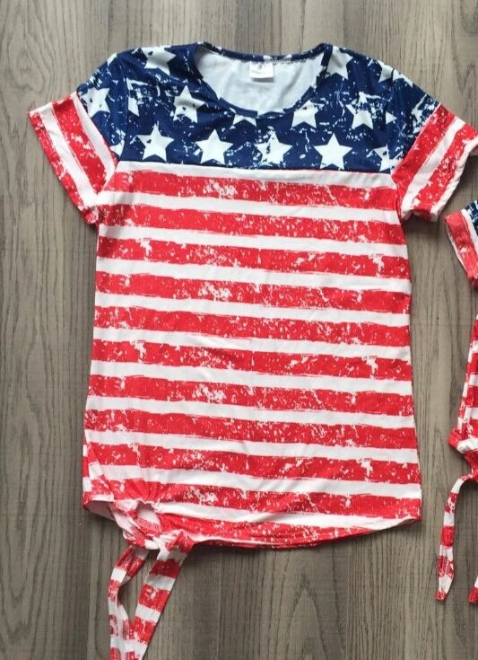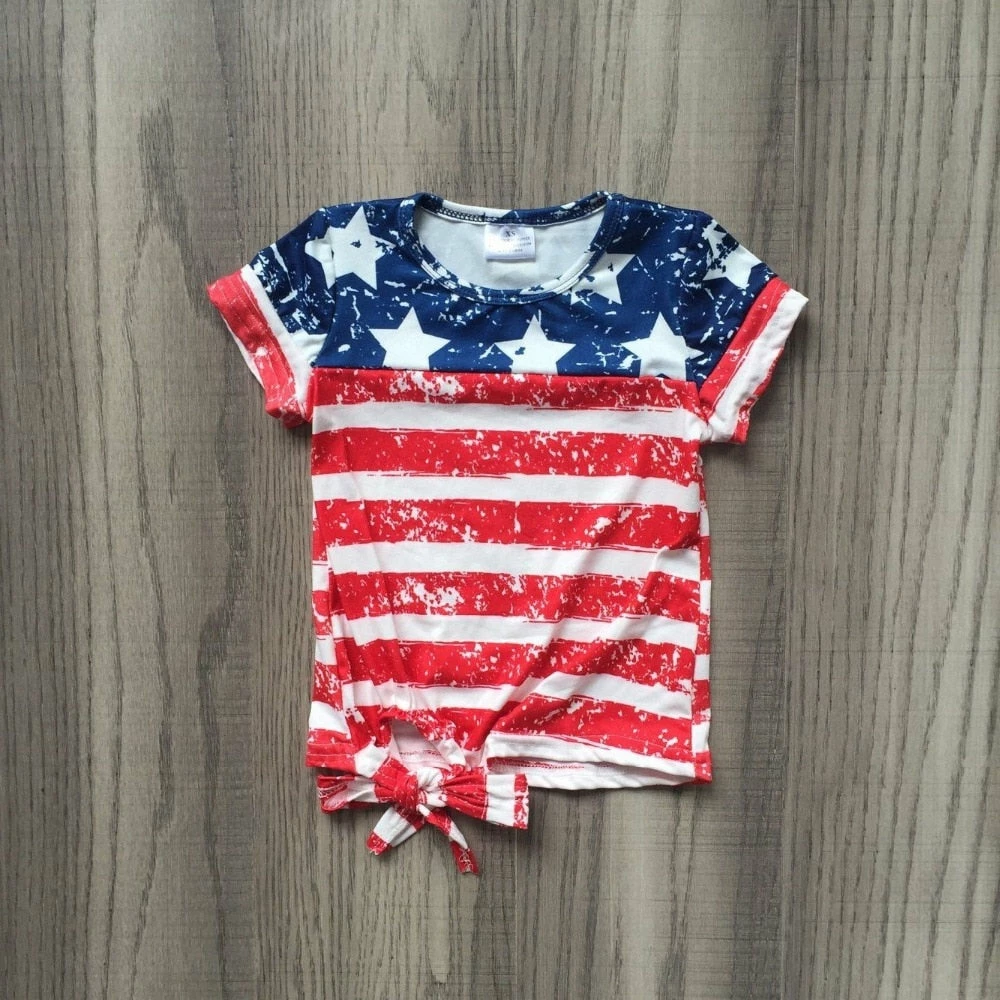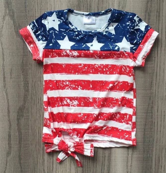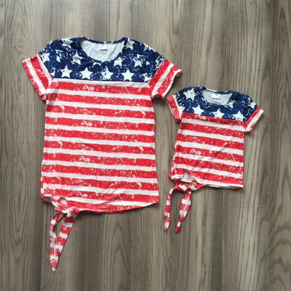 The American Store New July 4th Summer Baby Girls Clothes Navy Red Stripes Stars Cotton Top Shirts Raglans Boutique Mommy & Me Family Look Take Bow Kids Clothing