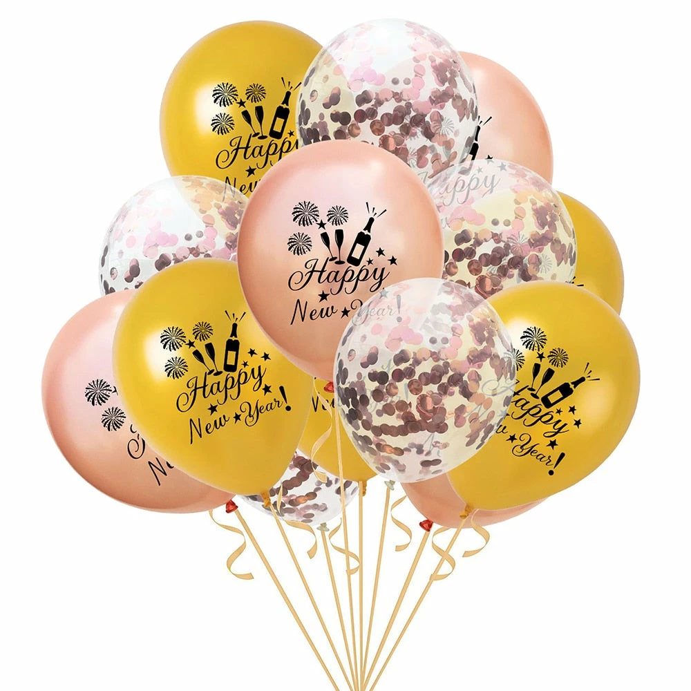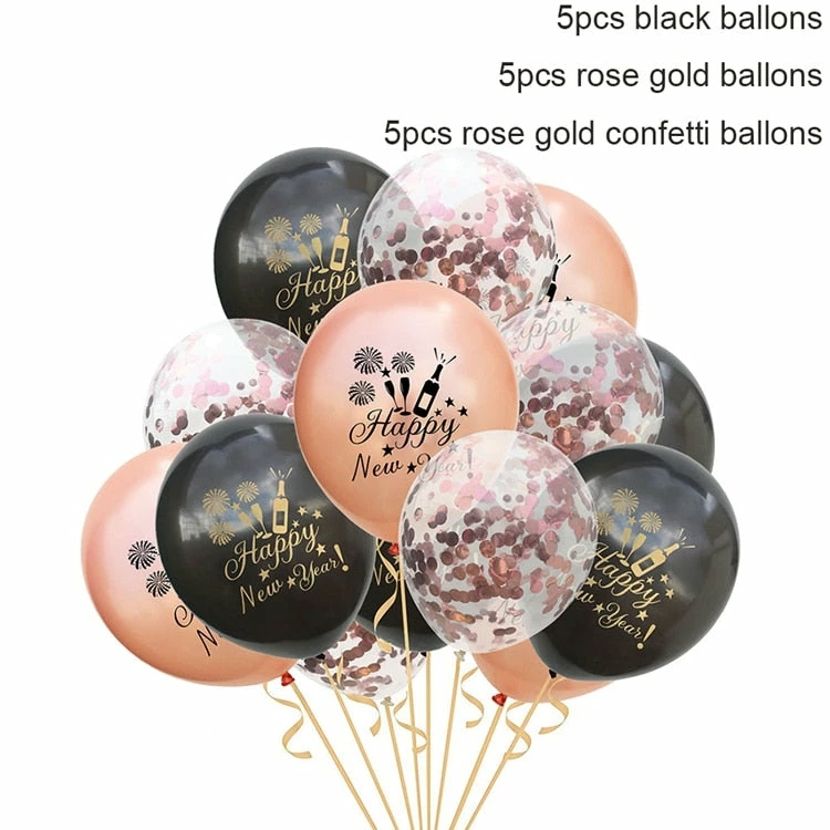 The American Store New Year Collection 15pcs 2019 Happy New Year Balloon Confetti Christmas Balloons Set Rose Gold Latex Ballon Birthday Party Decorations Baby