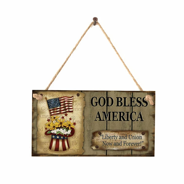 The American Store Patriotic Theme Party Supplies New Creative American 4th Of July Independence Day Wooden Plaque Sign God Bless USA Wall Hanging Wood Decoration