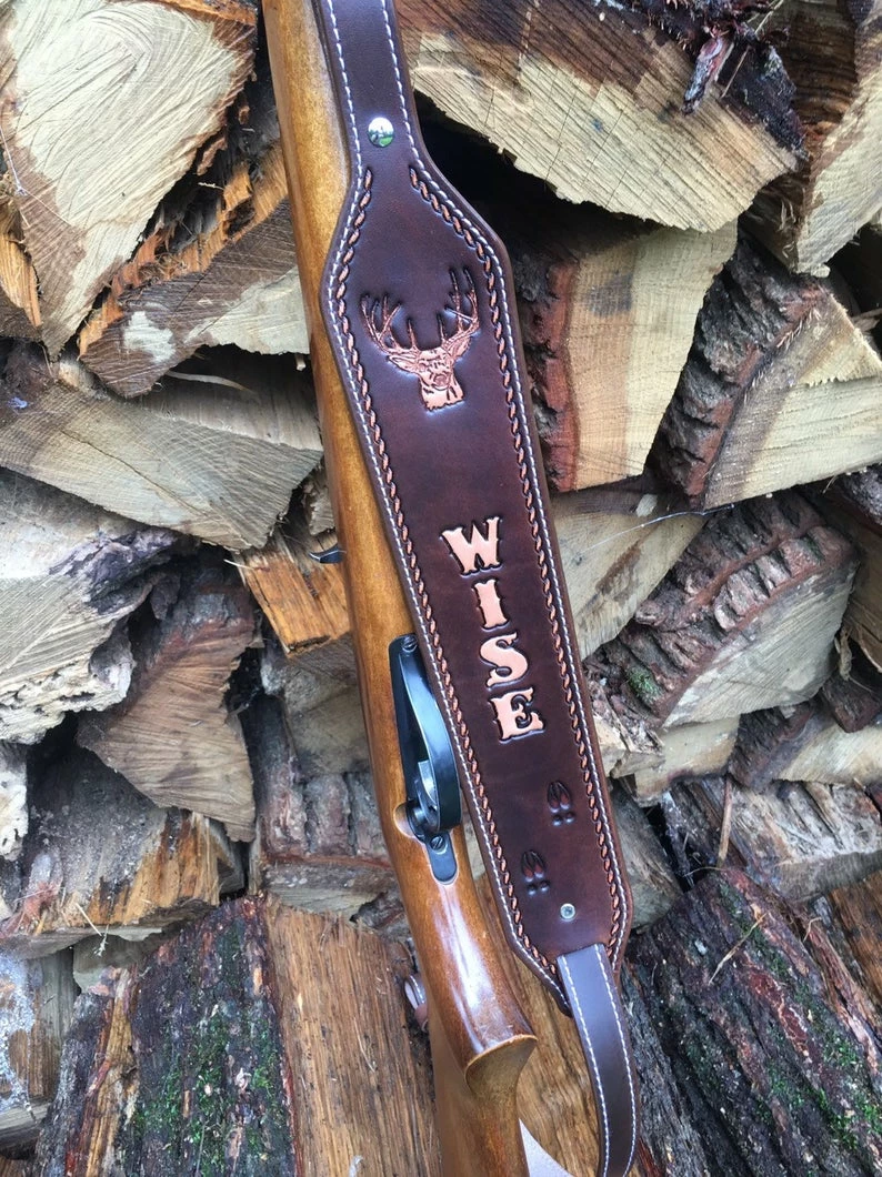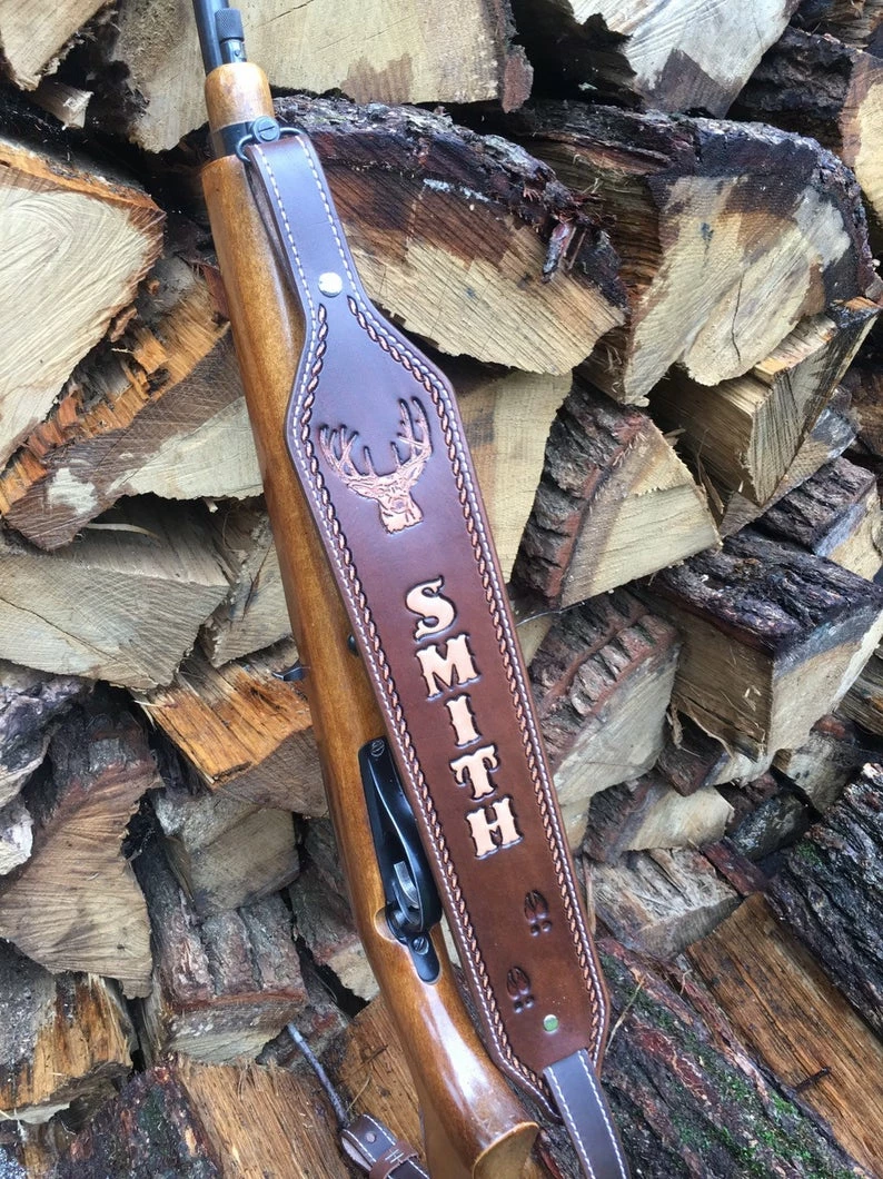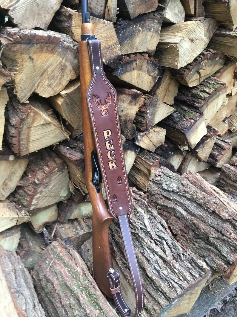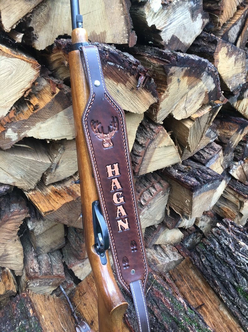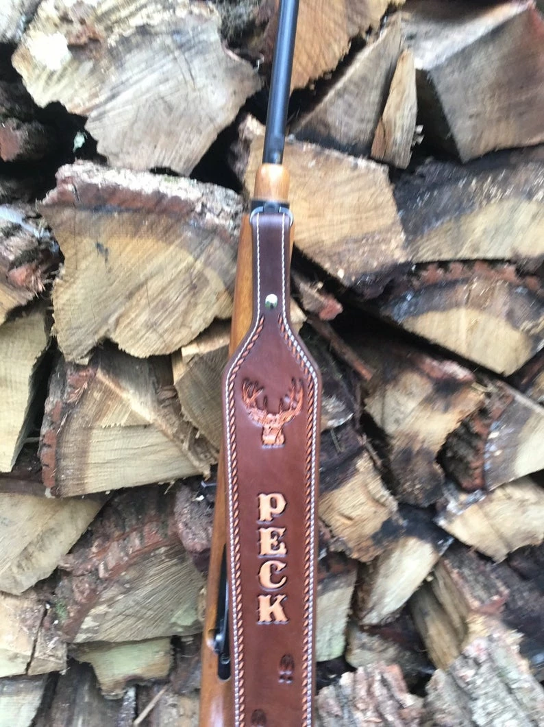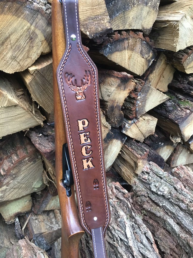 This sling will need 1.25” swivels. The sling is not padded and is made from single ply thick veg tan leather.