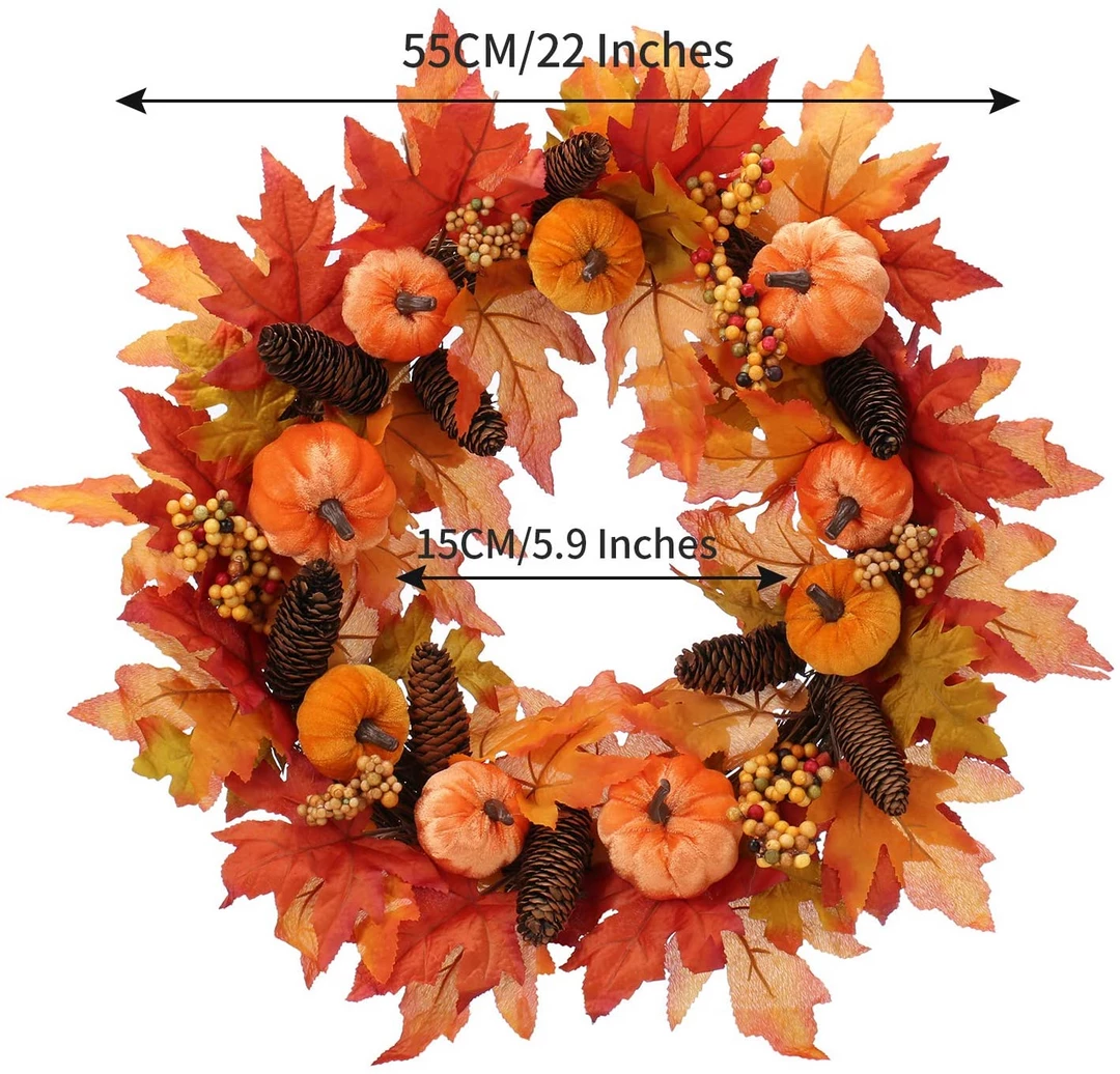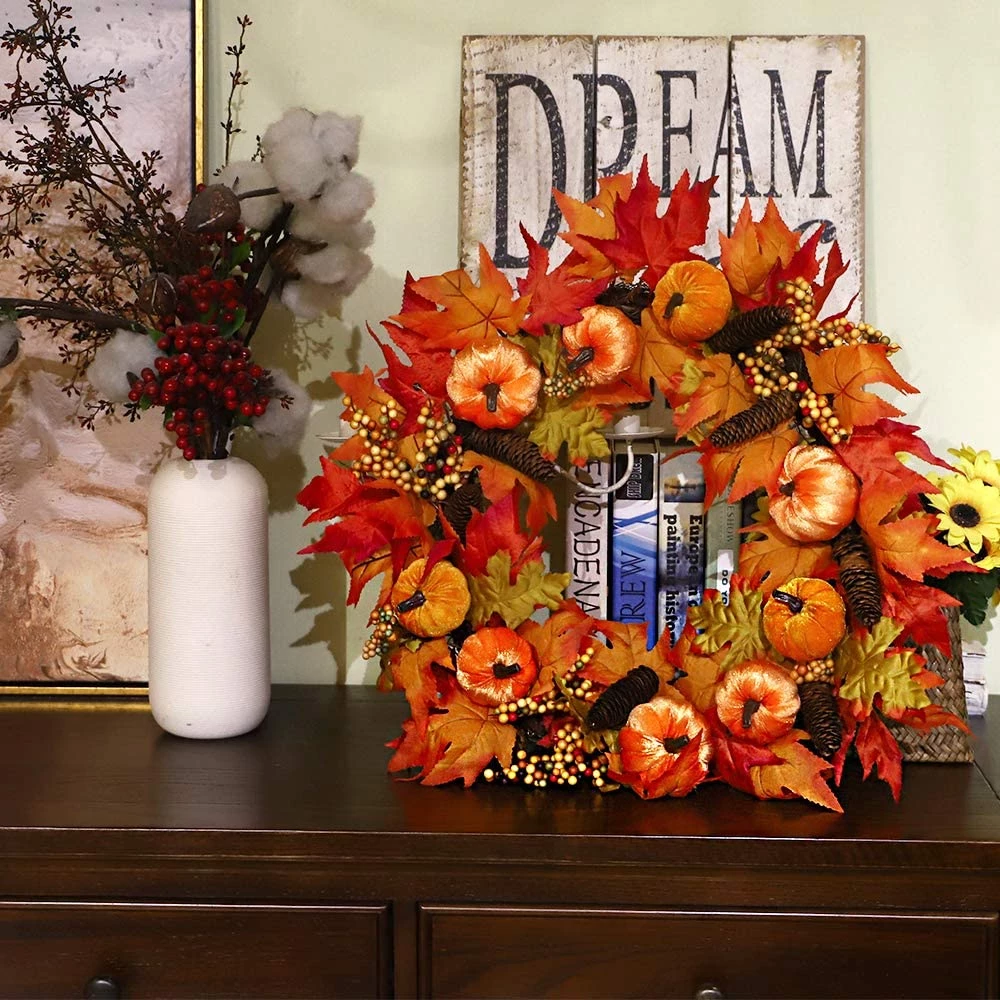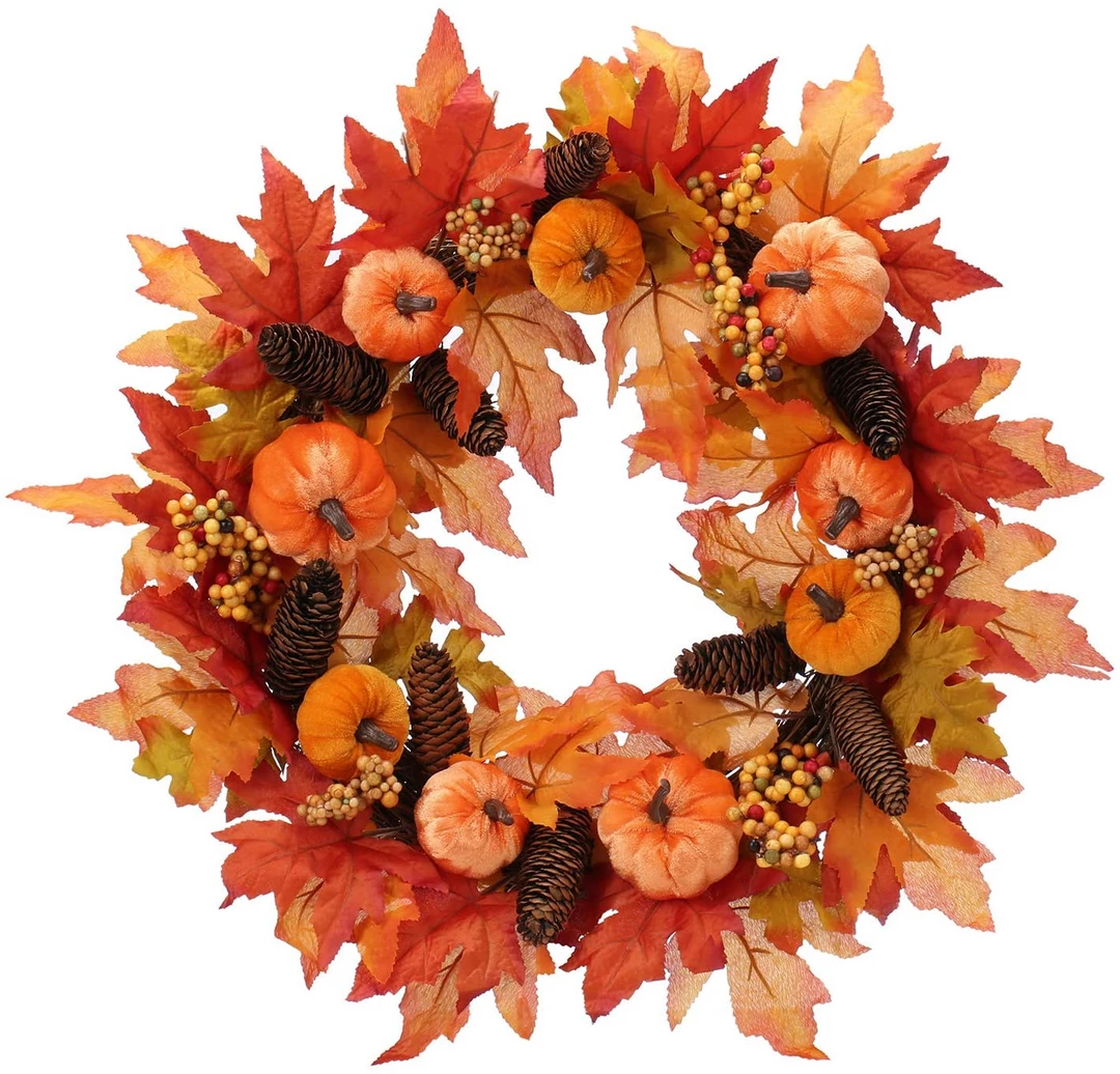 Pumpkin Wreath 20″ Grapevine Pip Berry Stems Fall Chevron Bow Autumn Spray Modern Wreath Rustic Housewarming