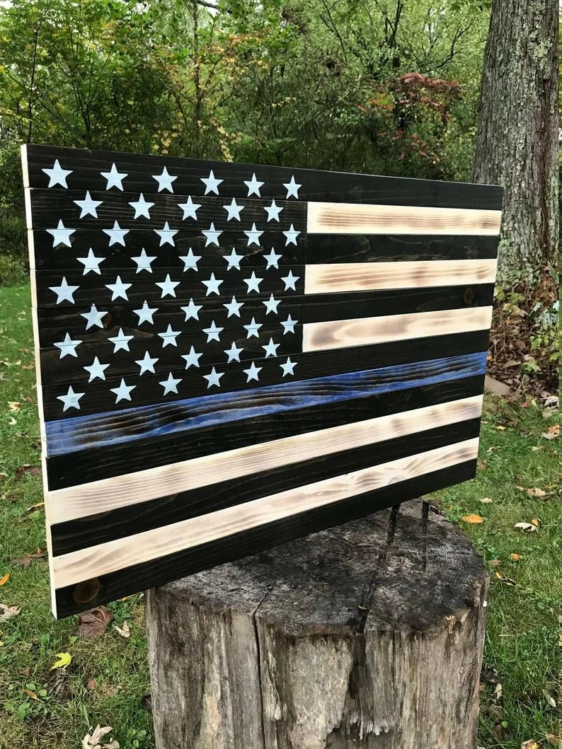 The flag and case are made out of pinewood with the stars and eagle/globe hand carved. Due to the different grains of the wood, no two flags will look alike.