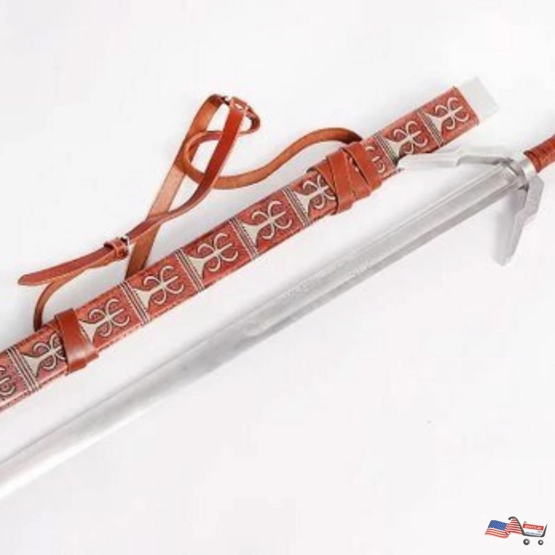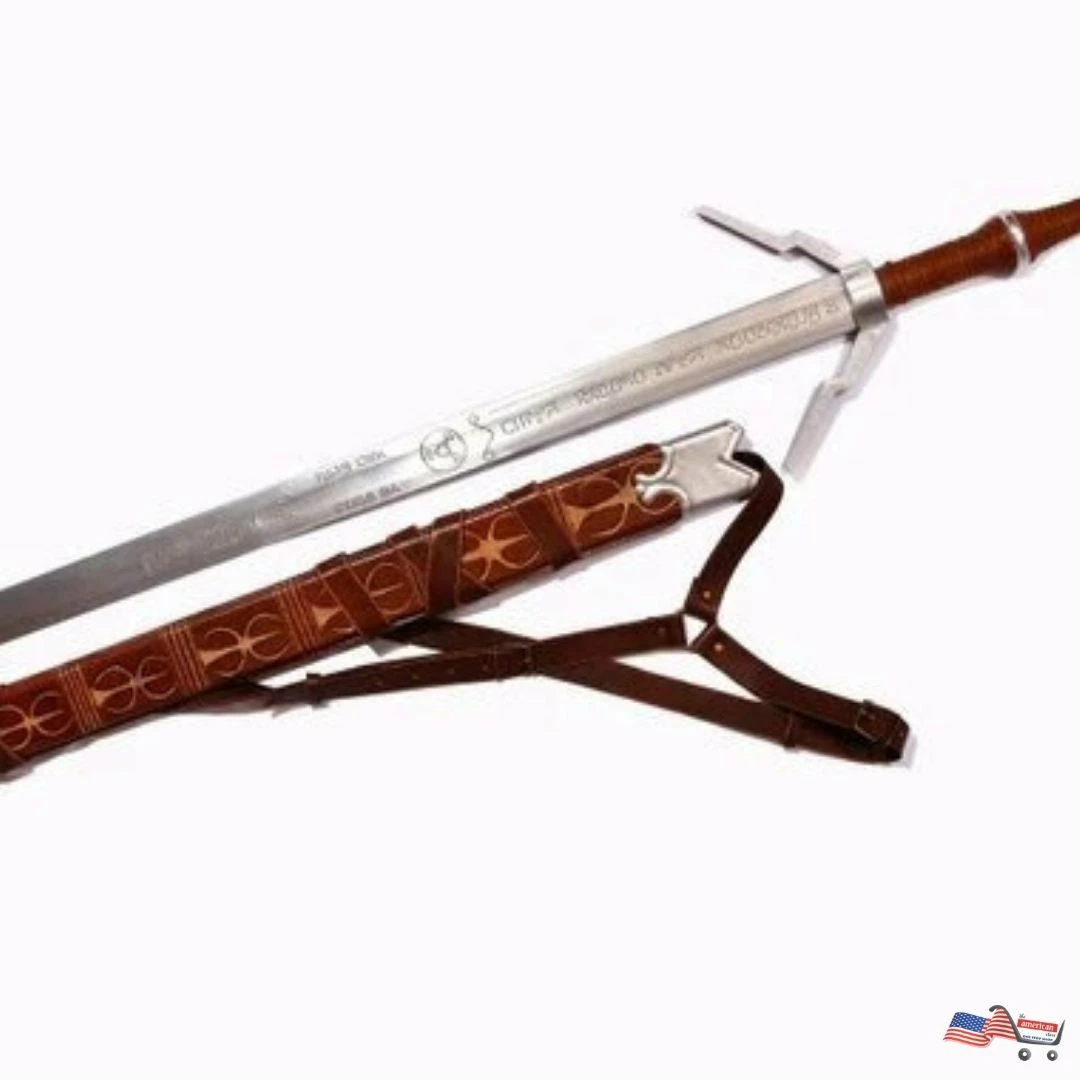 A Silver sword from Witcher 3 Wild Hunt. It`s owner – Geralt the Witcher, main game hero. This is a replication of the in-game sword with its own sheath. Remember, that the sword hates portals as much as Geralt himself. 🙂
