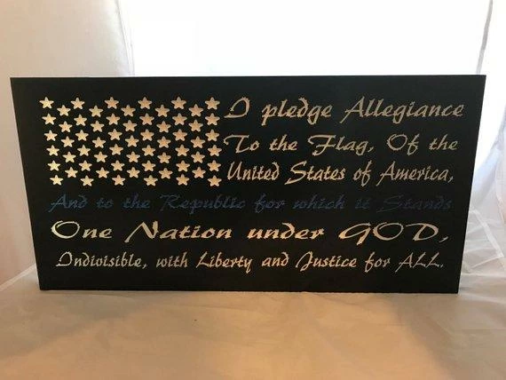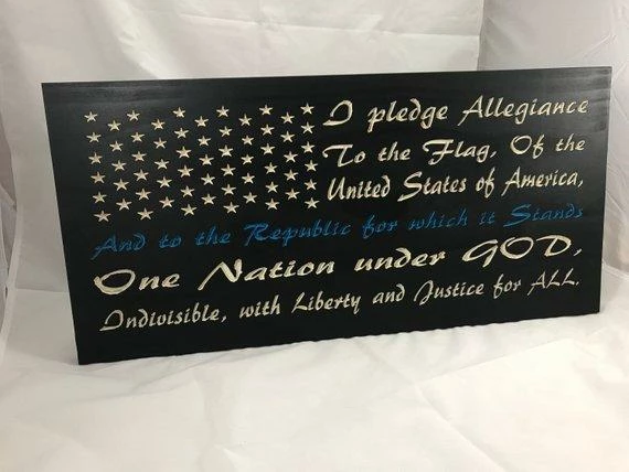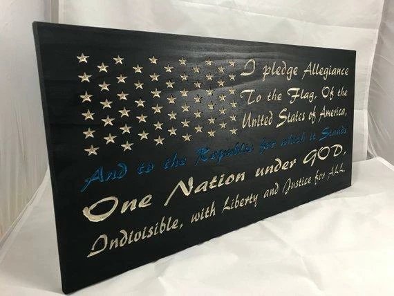 This custom rustic “pledge of allegiance” sign is the perfect gift for yourself or that law enforcement or firefighter loved one! It can be painted in the “Thin Blue Line” theme or the “Thin Red Line” theme. The sign will come with a saw tooth picture frame holder in order to mount to a wall.