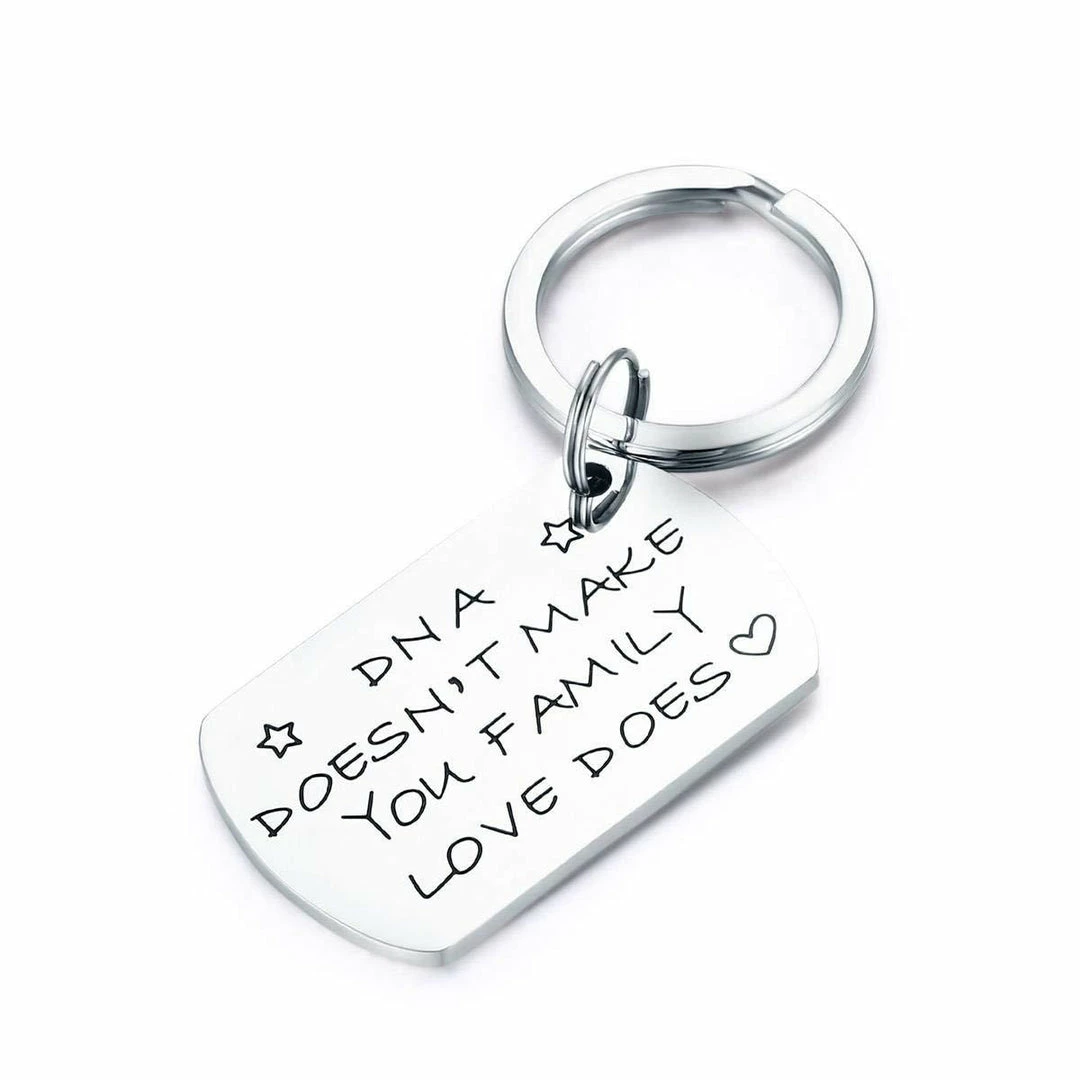 - “DNA Doesn’t make you family, Love does” , step dad gift, step dad, step dad keychain, fathers day, gift for step dad.