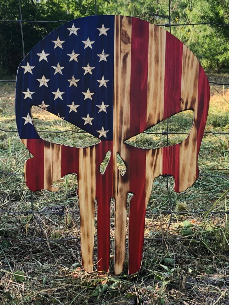 Xtra Large Wood Rustic USA Punisher Skull wall decor sign