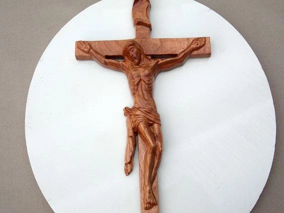 RELIGIOUS ART WOOD CARVING: This is a stunning 13″ Wooden Crucifix carved from solid wood. This realistic wall crucifix wood carving is breathtaking and is a rustic wooden crucifix perfect for hanging in any room in your home or church. It is an ideal Christian gift, Baptismal Gift or a very special upcoming Christian Wedding or religious gift-giving occasion.
