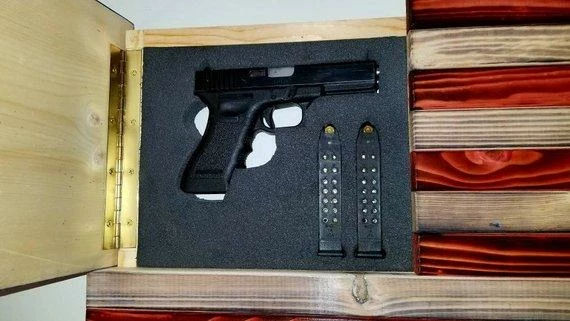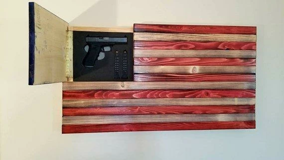33″ x 19″ x 3″ Wall hanging flag with hinged gun concealment area.