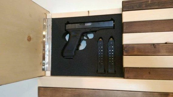 33″ x 19″ x 3″ Wall hanging flag with hinged gun concealment area.