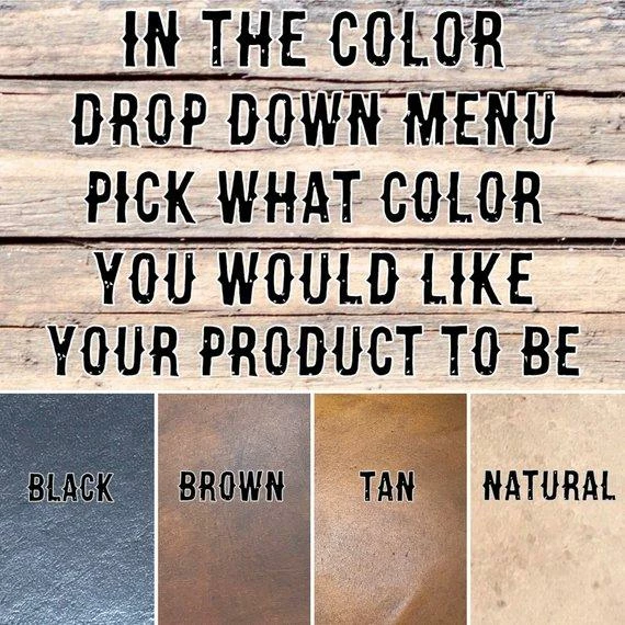 – Please pick what type of color you would like your custom leather journals. In the drop down menu you can pick between a black die, a brown die, a tan die, or just leave the leather natural.