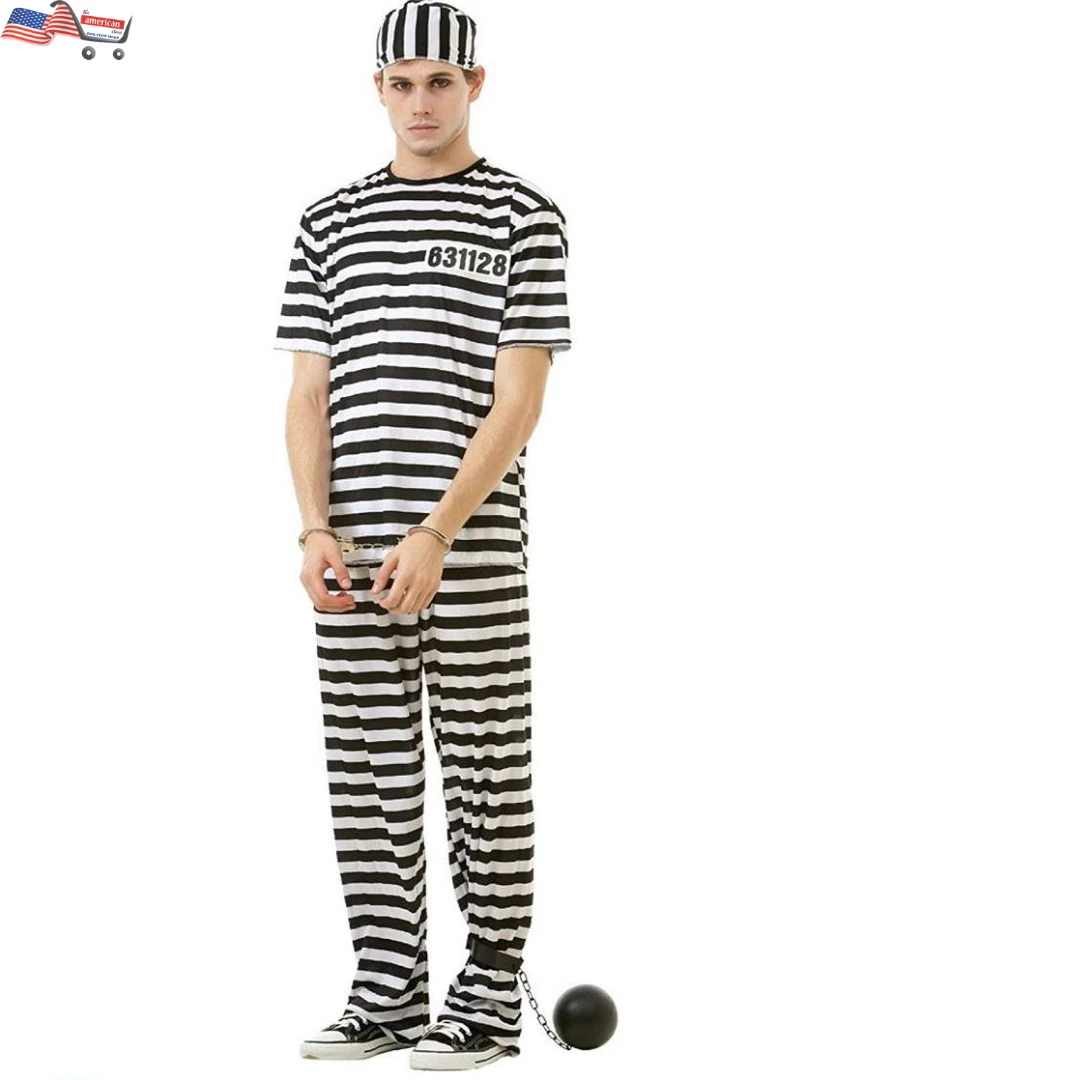 Umorden Official Store Umorden Carnival Party Halloween Prisoner Costume For Men Women Kids Child Family Violent Prisoner Costumes Fancy Dresses Set