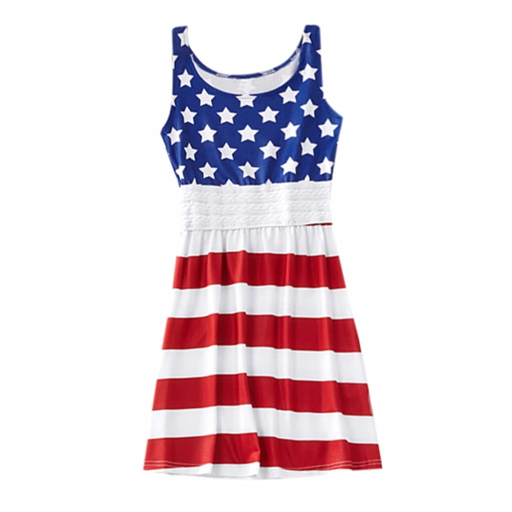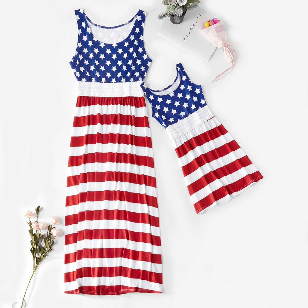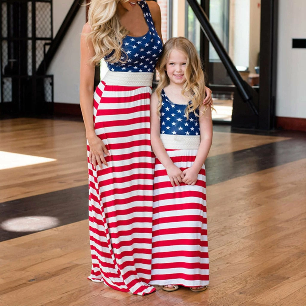 Upupup! Store Mommy&me Baby Girl Family Summer Sleeveless Stripe Print 4th Of July Dress Girls Dress Cute For Birthday Party Princess Dress Gg