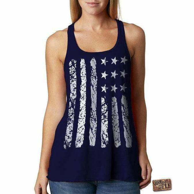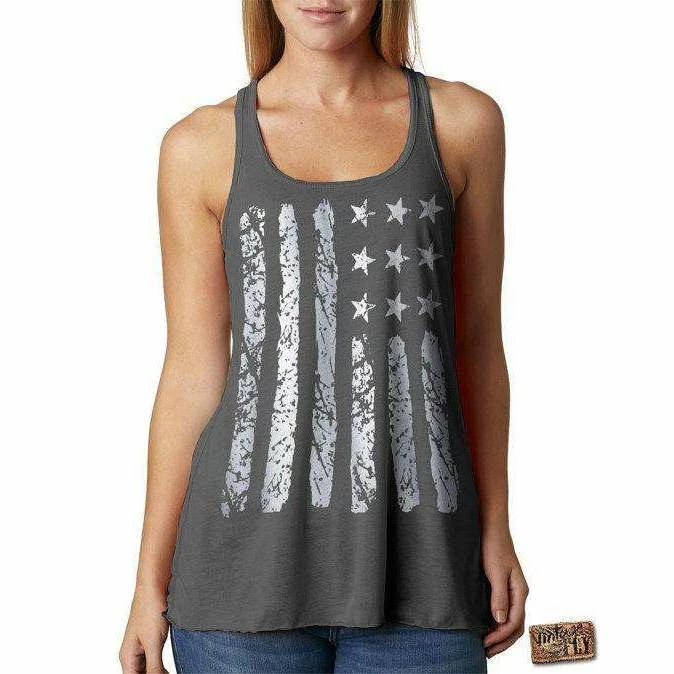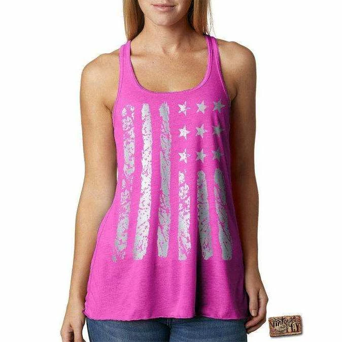 Show your Pride for the Greatest Country in the World and wear this Ladies American Flag Foil flowy tank..