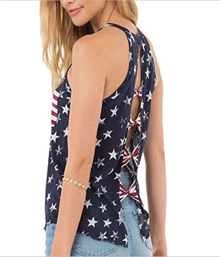 - Features:USA flag Print,Stars and stripes,Spaghetti Halter,Backless,Bowknot,Sleeveless,Ronud Neck,Pocket,Casual Sexy Tank
