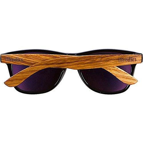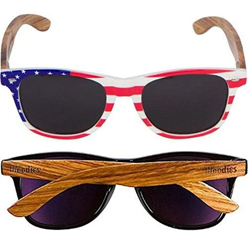 Woodies Zebra Wood Sunglasses with American Flag Frame offers a combination of 100% Zebra Wood arms that support a wayfarer style plastic frame. The lightweight Zebra Wood offers a comfortable fit that is durable and sturdy at the same time. Our unique stainless-steel, double-spring hinges are sturdy and designed to keep their shape year after year. The lenses are specially designed so that they are both dark and polarized, offering 100% UVA/UVB protection even in intense lighting conditions. These glasses are stylish, durable, and natural. Each pair includes a durable black carrying case, a microfiber lens cleaning cloth and a wood guitar pick! 30-Day Money back Guarantee