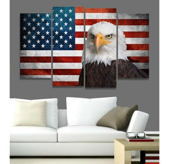 US Flag Canvas, American Flag Print, US Flag Wall Art, USA Poster, America Wall Decor, American Flag Canvas Premium Quality, Bald Eagle Flag 5 Panel Canvas Art, Five Panel Canvas Art