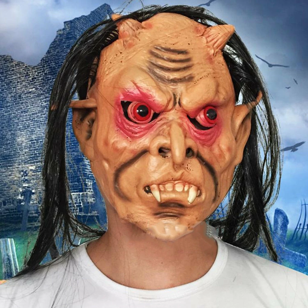 WZF Daily Goods Store Tricky Latex Full Face Red Eyes Long Hair Wig Mask Halloween Toothy Zombie Cosplay Horror Masks HQ Halloween Mask