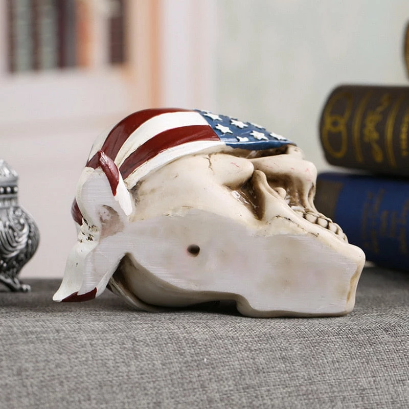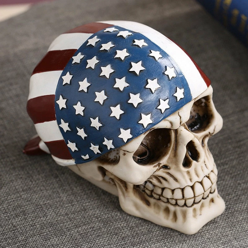 YF Eletrical&Tool Store USA American Flag Skull Statues Sculptures Resin Halloween Home Decor Decorative Craft Skull Ornaments Creative Art Carving Halloween Decorations
